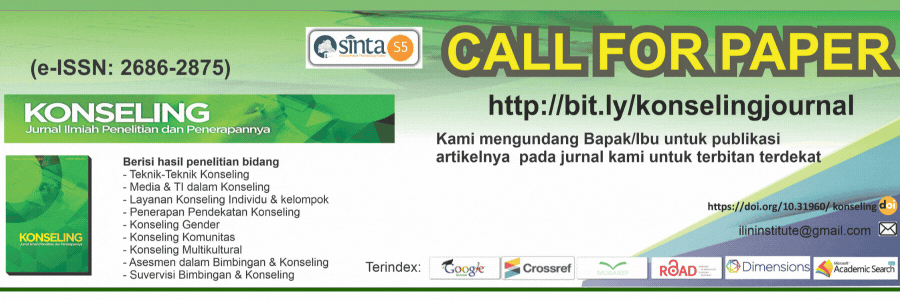 KONSELING: Jurnal Ilmiah Penelitian dan Penerapannya merupakan jurnal yang diterbitkan Institute for Learning Innovation and Counseling (ILIN Institute) dengan proses blind review memiliki terakreditasi Peringkat 5 Nomor 156/C/C3/KPT/2026 tanggal 7 April 2026, dengan e-ISSN: 2686-2875 dan prefix DOI: 10.31960/konseling. bertujuan untuk mempublikasikan artikel atau karya ilmiah berupa hasil penelitian baik dari Mahasiswa, Guru, Dosen maupun Praktisi Bimbingan dan Konseling di indonesia dan dari berbagai negara di dunia.