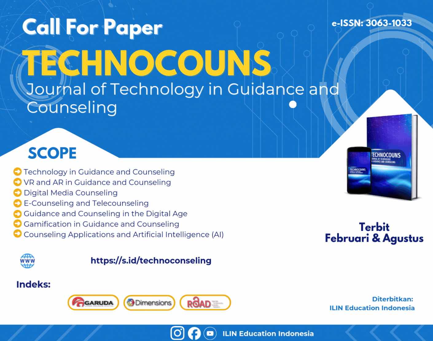 Technocouns: Journal of Technology in Guidance and Counseling merupakan jurnal yang diterbitkan ILIN Education Indonesia dengan proses Peer Review memiliki e-ISSN: 3063-1033 dan prefix DOI: 10.31960.